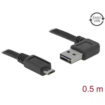 Przewód Delock z męskim wtykiem EASY-USB umożliwia podłączenie do żeńskiego portu USB-A dowolną stroną, dzięki czemu zwiększa wygodę użytkowania. Złącza USB 2.0 Typ-A oraz USB 2.0 Typ Micro-B zapewniają stabilne połączenie, a pozłacane złącza zwiększają trwałość kabla. Kabel ma średnicę 4,5 mm i długość 0,5 metra, a jego czarny kolor pasuje do wielu...