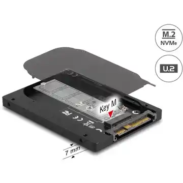 Konwerter U.2 > M.2 umożliwia podłączenie dysków SSD M.2 NVMe w formacie 2280 do systemów z interfejsem U.2 SFF-8639. Urządzenie obsługuje PCIe 3.0 oraz nowoczesne funkcje takie jak NVMe, S.M.A.R.T., TRIM i bootowanie, zapewniając kompatybilność z dwustronnymi modułami o wysokości do 1,5 mm.