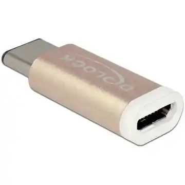 Adapter USB marki Delock umożliwia podłączenie urządzenia ze złączem USB-C do komputera za pomocą portu Micro-B. Dzięki temu rozwiązaniu, żeński port USB-C zostaje zamieniony na port Micro-B, umożliwiając wygodne połączenie urządzeń takich jak obudowy dysków twardych czy smartfony, oferując transmisję danych do 480 Mb/s.