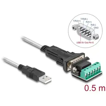 Kabel USB 2.0 Typ-A Delock umożliwia niezawodne połączenie szeregowe RS-422 i RS-485, dedykowane urządzeniom pomiarowym, systemom POS, drukarkom, modemom oraz IoT. Wyposażony w blok zacisków umożliwiający montaż i opcjonalne zasilanie 5 V, zapewnia stabilną transmisję danych z szybkością do 921,6 Kbps.