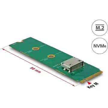 Adapter marki Delock konwertuje slot M.2 z kluczem A lub E na klucz M, umożliwiając podłączenie dysków SSD M.2 NVMe w urządzeniach z interfejsem A lub E. Kompatybilny z modułami w formatach 2280, 2260 i 2242, obsługuje PCIe x2 i montaż dwustronny, sprawdzając się w systemach mobilnych i testowych.