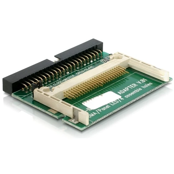 Adapter IDE 44PIN -> Compact Flash pozwalający podłączyć pionowo kartę Compact Flash do gniazda IDE 44 PIN. Dzięki obsłudze funkcji bootowania pozwala w pełni zastąpić standardowy dysk twardy. Zastosowanie adaptera umożliwia zainstalowanie dowolnego systemu operacyjnego. Przejściówka podłączana jest bezpośrednio do płyty posiadającej złącze IDE 44pin (np. Intel D945GSEJT).