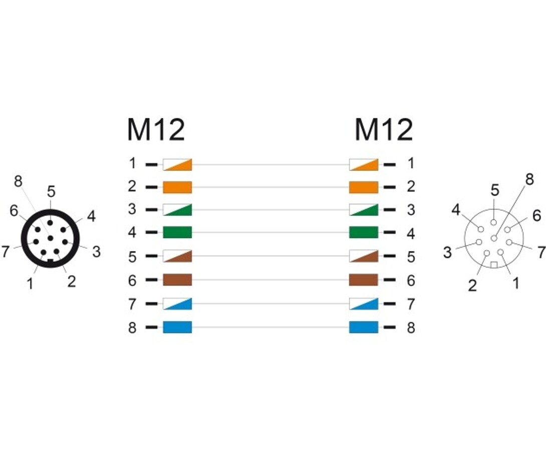- Złącze: 1 x M12 męski A-coded 8 pin, 1 x M12 żeński A-coded 8 pin