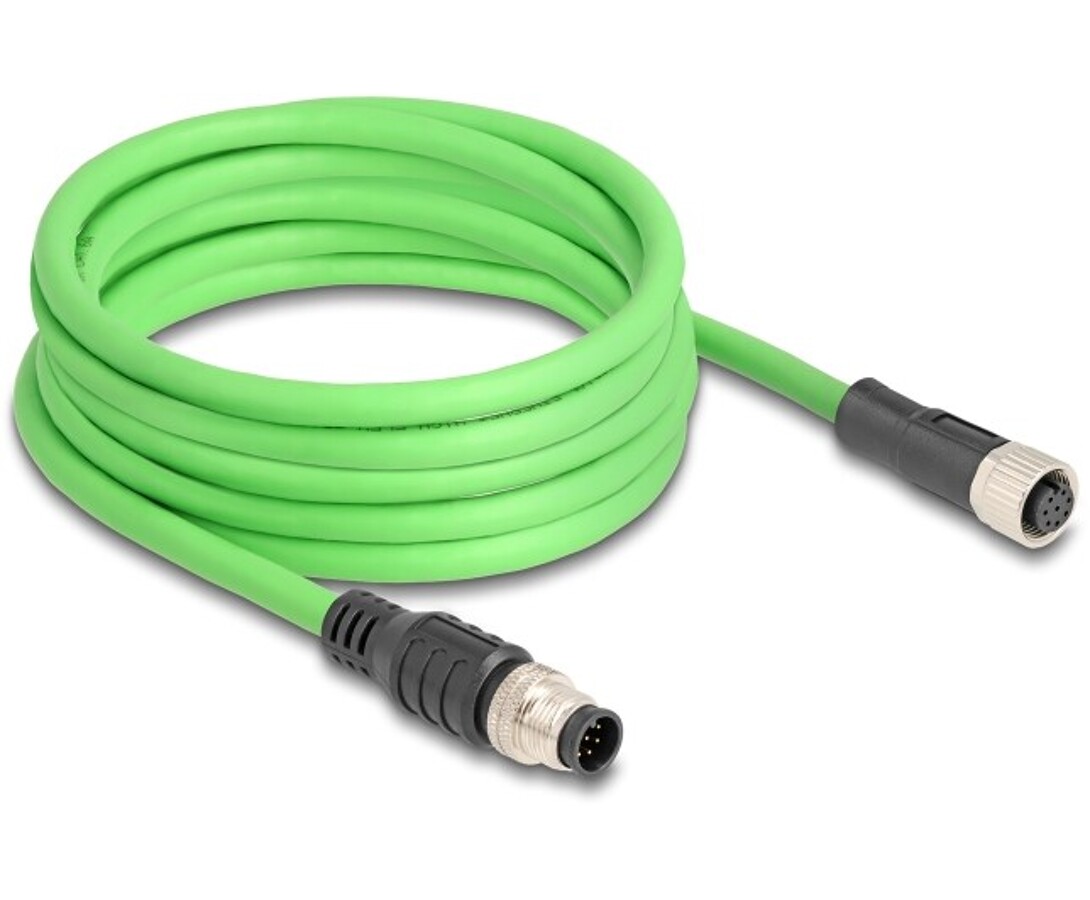 Przewód adapter M12 A-coded 8-pin męski-żeński PUR TPU 5m Delock 80404