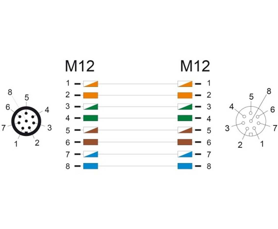 - Złącze: 1 x M12 męski A-coded 8 pin, 1 x M12 żeński A-coded 8 pin