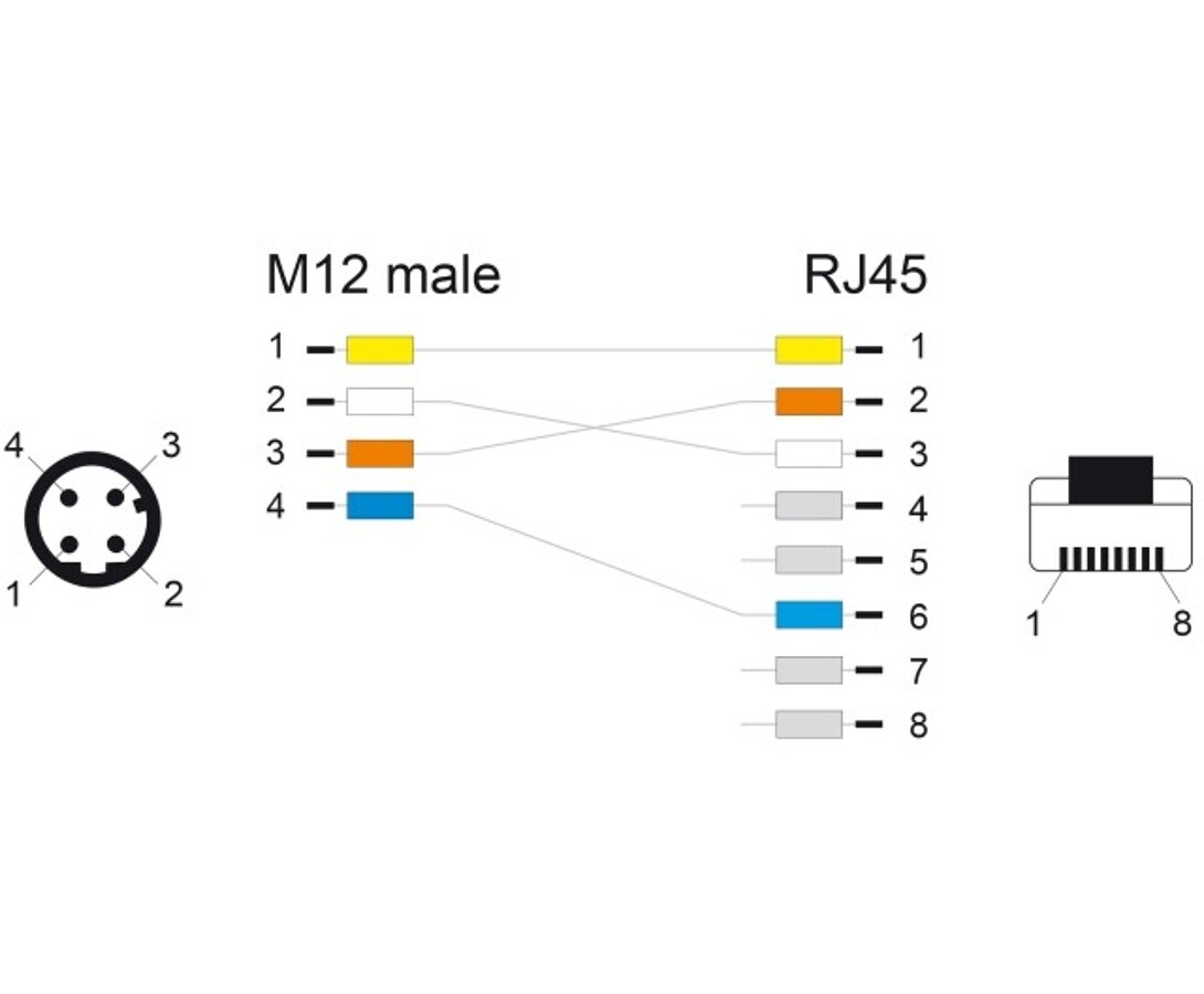 - Złącze: 1 x M12 męski D-coded 4 pin, 1 x RJ45 męski
