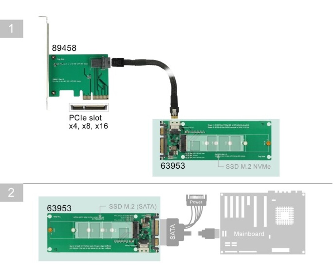 Konwerter U.2 SFF-8654 lub SATA - 1x M.2 z wpustem M Delock 63953
