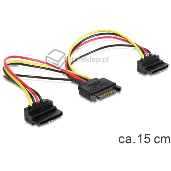 Kabel zasilający SATA męski - 2xSATA żeński kątowy zatrzask 15cm