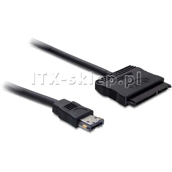 Wysokiej jakości kabel firmy Delock pozwalający podłączyć dysk SATA 2,5" lub 3,5" poprzez port Power Over eSATA bezpośrednio do notebooka lub komputera stacjonarnego. Takie rozwiązanie jest bardzo wygodne - nie wymaga doprowadzenia dodatkowego zasilania, gdyż napięcie 5V lub 12V (w przypadku nośnika 3,5") potrzebne do pracy dysku dostarczane jest przez wbudowany port USB Power Over eSATA. Długość kabla wynosi 1 metr.