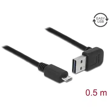 Przewód Delock z męskim wtykiem EASY-USB umożliwia podłączenie do portu USB-A w dwóch kierunkach, co zapewnia wygodę użytkowania. Kabel wyposażony jest w odwracalny męski wtyk USB 2.0 Typ-A oraz męski wtyk USB 2.0 Typ Micro-B. Pozłacane złącza poprawiają jakość transmisji, a czarny kolor kabla pasuje do różnych urządzeń.