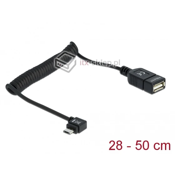 Kabel OTG USB-A micro-B kątowy spiralny 28-55cm do smartphone'a Delock 83354