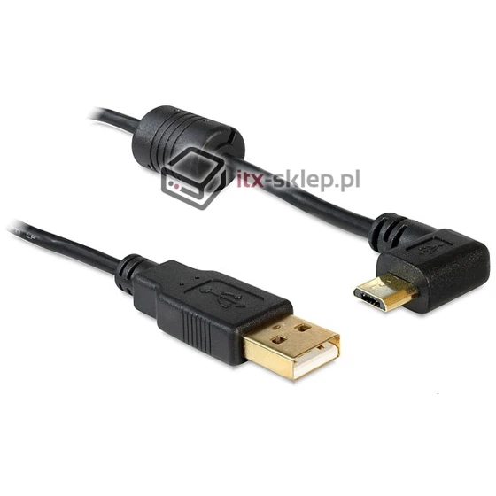 Kabel USB-A micro-B kątowy poziomy pozłacany M-F 1m Delock 83147