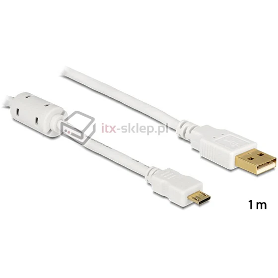 Kabel USB-A micro-B prosty pozłacany biały M-F 1m Delock 83412