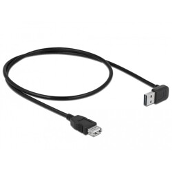 Przewód marki Delock z męskim wtykiem EASY-USB umożliwia podłączenie do żeńskiego portu USB-A w obu kierunkach. Męski port USB-A jest odwracalny, co zapewnia łatwe podłączenie w lewo lub w prawo. Złącze składa się z 1 x USB 2.0 Typ-A, odwracalnego wtyku męskiego, kątowego, w górę / w dół oraz 1 x USB 2.0 Typ-A, żeńskiego wtyku. Kabel o średnicy 4,5 mm posiada linie danych 28 AWG i linie zasilania 24 AWG. Złącza pokryte złotem zapewniają stabilną jakość transmisji. Kabel ma kolor czarny i długość około 0,5 m.