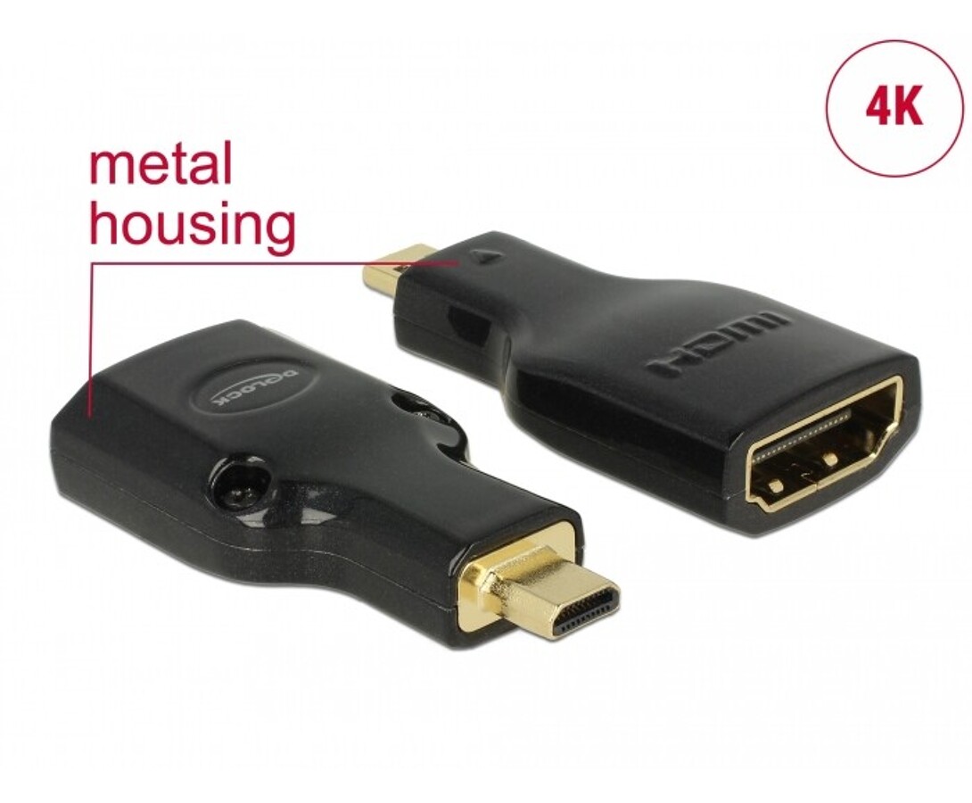 Adapter micro HDMI-D wtyk do A gniazdo czarny 4K obudowa metalowa Delock 65664