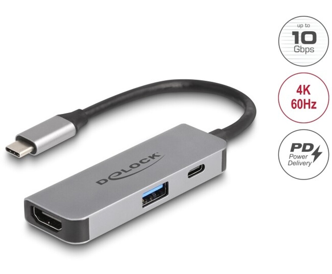 Adapter USB typu C do HDMI 4K 60Hz z USB Typ-A i USB typu C PD 95 W Delock 61063
