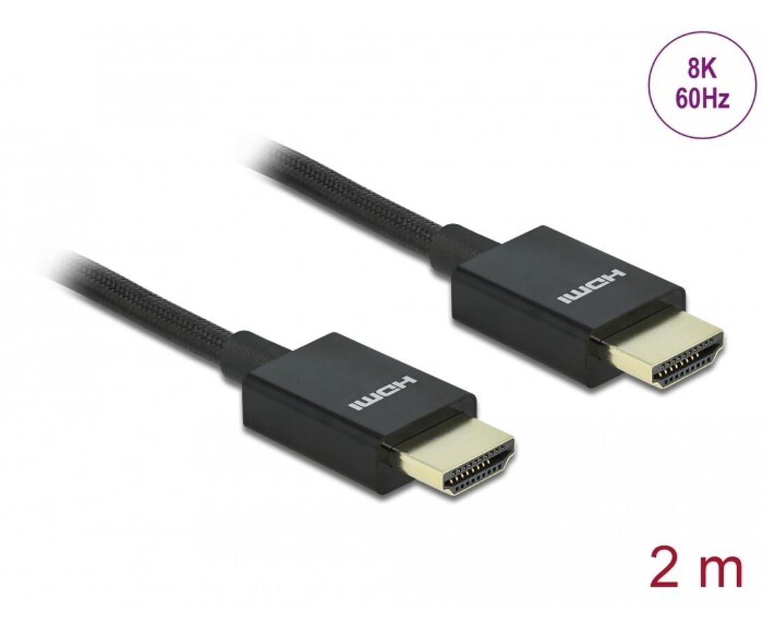 Przewód HDMI koncentryczny HighSpeed 48Gbps 8K 60Hz 2m czarny Delock 85385