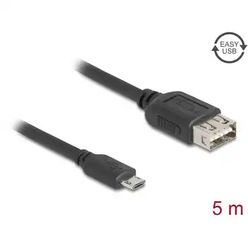 Kabel Delock umożliwia podłączenie urządzeń z gniazdem Micro USB do urządzeń USB, takich jak pamięci przenośne i zewnętrzne dyski twarde. Dzięki odwracalnym złączom EASY USB, kabel jest wygodny w użyciu w obu kierunkach, co ułatwia podłączanie. Zapewnia szybki transfer danych do 480 Mbps i posiada pokryte złotem złącza oraz podwójne ekranowanie.
