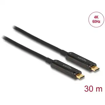 Kabel Delock to aktywny kabel optyczny umożliwiający podłączenie monitora USB-C o rozdzielczości 4K Ultra HD do komputera z portem USB-C i obsługą DisplayPort Alternate Mode. Kabel oferuje wysoką jakość transmisji sygnałów audio i wideo, obsługuje DisplayPort 1.2 z szybkością do 21,6Gb/s i zapewnia obsługę HDR oraz HDCP 1.4/2.2.