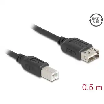 Przewód Delock umożliwia przedłużenie połączenia USB, oferując odwracalny wtyk USB 2.0 Typ-A żeński i USB 2.0 Typ-B męski. Dzięki odwracalnemu złączu EASY USB, kabel jest odporny na skręcanie i łatwy w użytkowaniu. Kabel obsługuje szybki transfer danych do 480 Mbps, a jego złocone złącza i podwójne ekranowanie zapewniają lepszą trwałość.