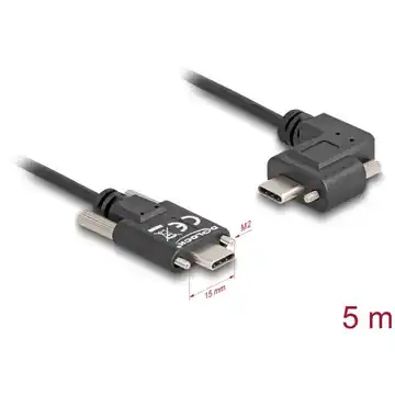 Kabel USB Delock z dwoma złączami USB typu C umożliwia stabilne połączenie urządzeń z komputerem PC lub laptopem, eliminując ryzyko przypadkowego odłączenia. Zastosowanie śrub w złączach zapewnia pewność połączenia, a kabel obsługuje USB 2.0 z prędkością transmisji do 480 Mbps oraz zasilanie do 60 W, idealnie nadając się do przesyłania danych i zasilania.