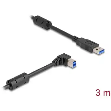 Przewód USB Delock zapewnia połączenie urządzenia ze złączem USB 3.0 Typ-B z komputerem lub laptopem. Kątowe złącze męskie pozwala na oszczędność miejsca, idealne do instalacji w ciasnych przestrzeniach. Dzięki pozłacanym stykam i podwójnemu ekranowaniu kabel zapewnia stabilną transmisję danych do 5 Gbps.