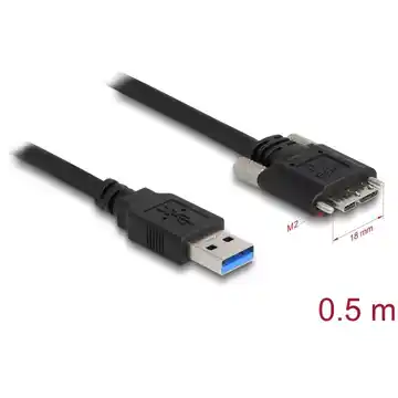 Przewód USB marki Delock umożliwia podłączenie urządzeń z portem USB 3.0 Typ Micro-B do komputerów osobistych i notebooków. Wyposażony w złącza USB 3.0 Typ-A męski i Typ Micro-B męski ze śrubkami M2, zapewnia stabilność połączenia oraz prędkość transmisji do 5 Gbps. Kabel ma 0,5 m długości, pozłacane styki i elegancki czarny kolor, gwarantując niezawodny...