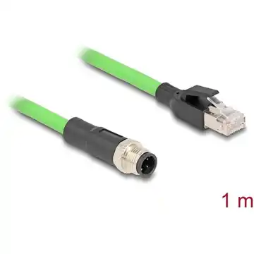 Przemysłowy przewód Ethernet M12 A-coded 8-pinowy męski–żeński Delock przeznaczony do zastosowań w automatyce, czujnikach i systemach sterowania. Dzięki ekranowaniu SF/UTP oraz powłoce PUR (TPU) odporny jest na zakłócenia, oleje i promieniowanie UV, co zapewnia trwałość oraz niezawodną transmisję danych w środowiskach przemysłowych.