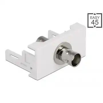 Moduł Delock Easy45 z dwoma złączami BNC żeńskimi (wewnętrznym i zewnętrznym) umożliwia łatwe połączenia sygnałowe w systemach monitoringu lub audio-wideo. Dzięki mechanizmowi zatrzaskowemu pasuje do uchwytów i korytek Easy45, oferując szybki montaż i schludną integrację z instalacją.