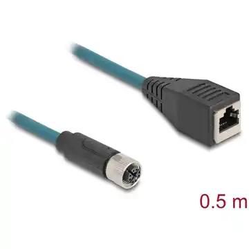 Wysokiej jakości przewód klasy IP67 ze złączem M12 D-coded 4-pin męski - RJ45 Cat.5e żeński. Długość 50cm.