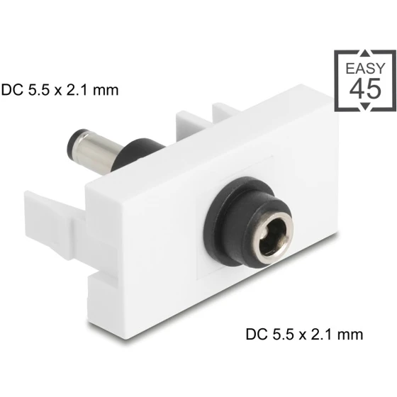 Moduł Easy45 DC 5,5 x 2,1 mm gniazdo do DC 5,5 x 2,1 mm wtyk białe Delock 90862