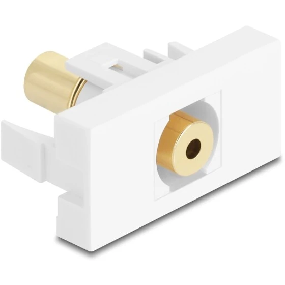 Moduł Delock Easy45 wyposażony w dwa złącza RCA żeńskie w kolorach żółtym i białym umożliwia przesyłanie sygnału audio w systemie modułowym Easy45. Posiada mechanizm zatrzaskowy zapewniający stabilne mocowanie oraz łatwy demontaż, a złocone styki poprawiają jakość transmisji.