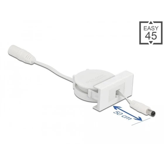 Moduł Easy45 kabel zasilania zwijany DC 5,5 x 2,1 mm żeński / męski biały Delock 81377