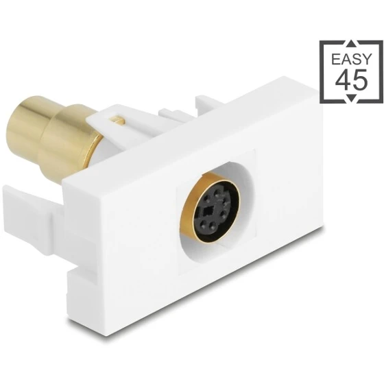 Moduł Delock Easy45 z dwoma portami RCA (żeńskimi) umożliwia łatwe połączenie audio w systemach multimedialnych. Kompatybilny z systemem Easy45, idealny do instalacji w obudowach i korytkach kablowych o głębokości co najmniej 45 mm.