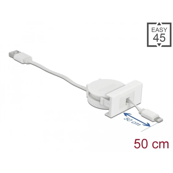 Moduł Easy45 USB 2.0, zwijany kabel USB Typ-A do 8 Pin Lightning żeński, biały Delock 81331