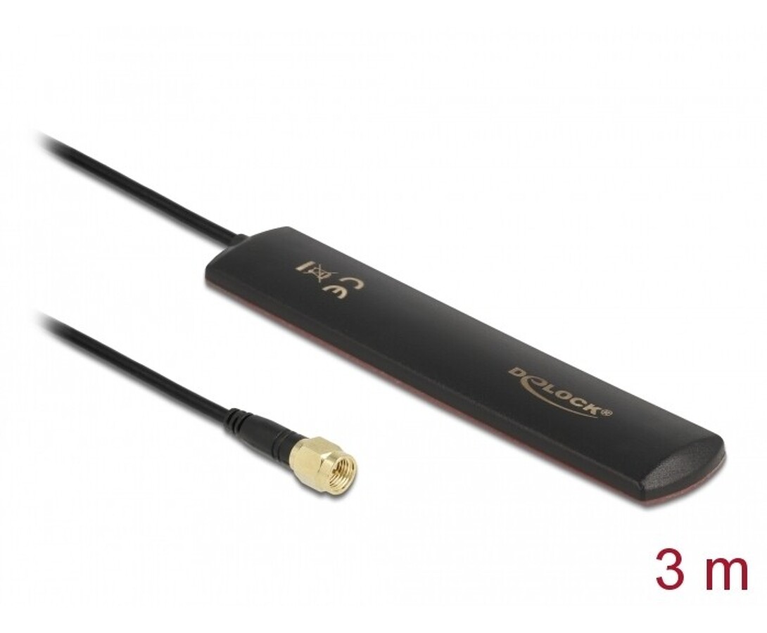 Antena LTE SMA 3 dBi wszechkierunkowa 3 m czarna montaż klejowy Delock 88987