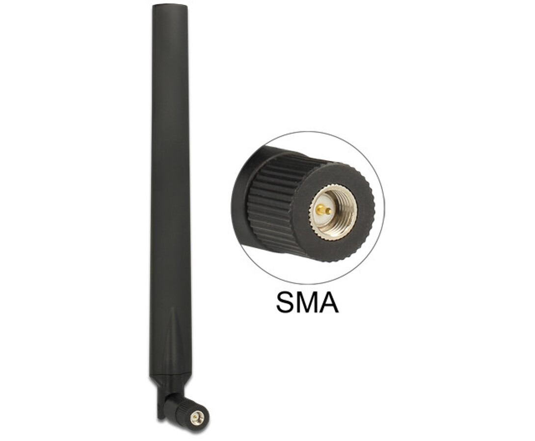 Antena SMA męska LTE wielokierunkowa 0 - 4 dBi ze złączem pochylania czarna Delock 88976