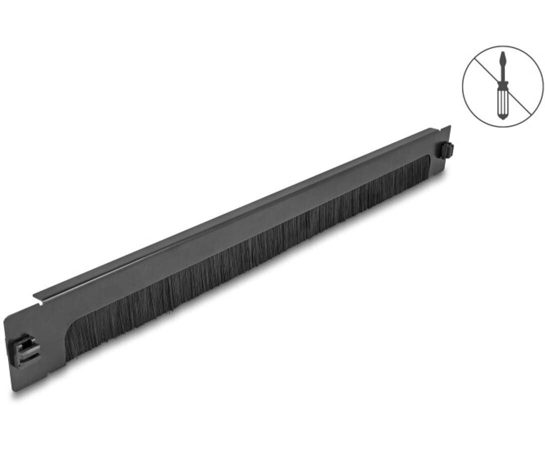 Listwa szczotkowa 19" do porządkowania kabli dolna beznarzędziowa 1U czarna Delock 90629