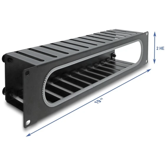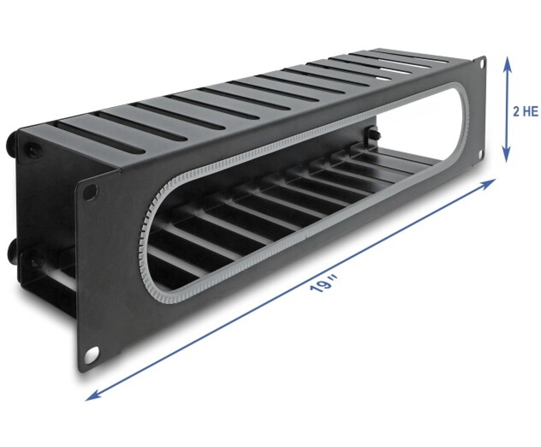 Panel do zarządzania kablami 19" z ochroną krawędzi 2U czarny Delock 67279