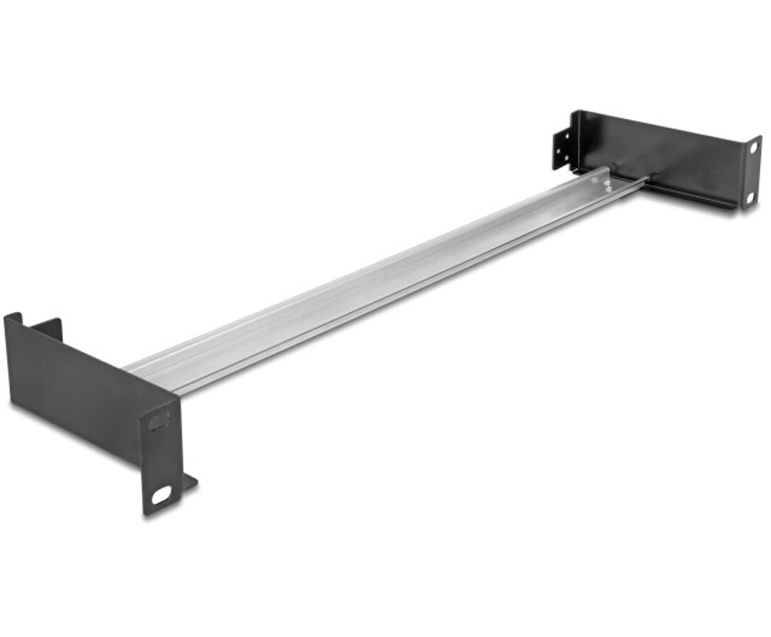 Panel na szynę DIN marki Delock przeznaczony do montażu w szafach 19". Może być używany jako system montażowy, np. do zasilaczy, zacisków śrubowych i modułów interfejsów. Szynę DIN można zainstalować zarówno poziomo, jak i pionowo, co zapewnia elastyczność i wszechstronność przy integracji urządzeń. Produkt wykonany z metalu w kolorze czarnym RAL9005, doskonały do profesjonalnych zastosowań w szafach rackowych.