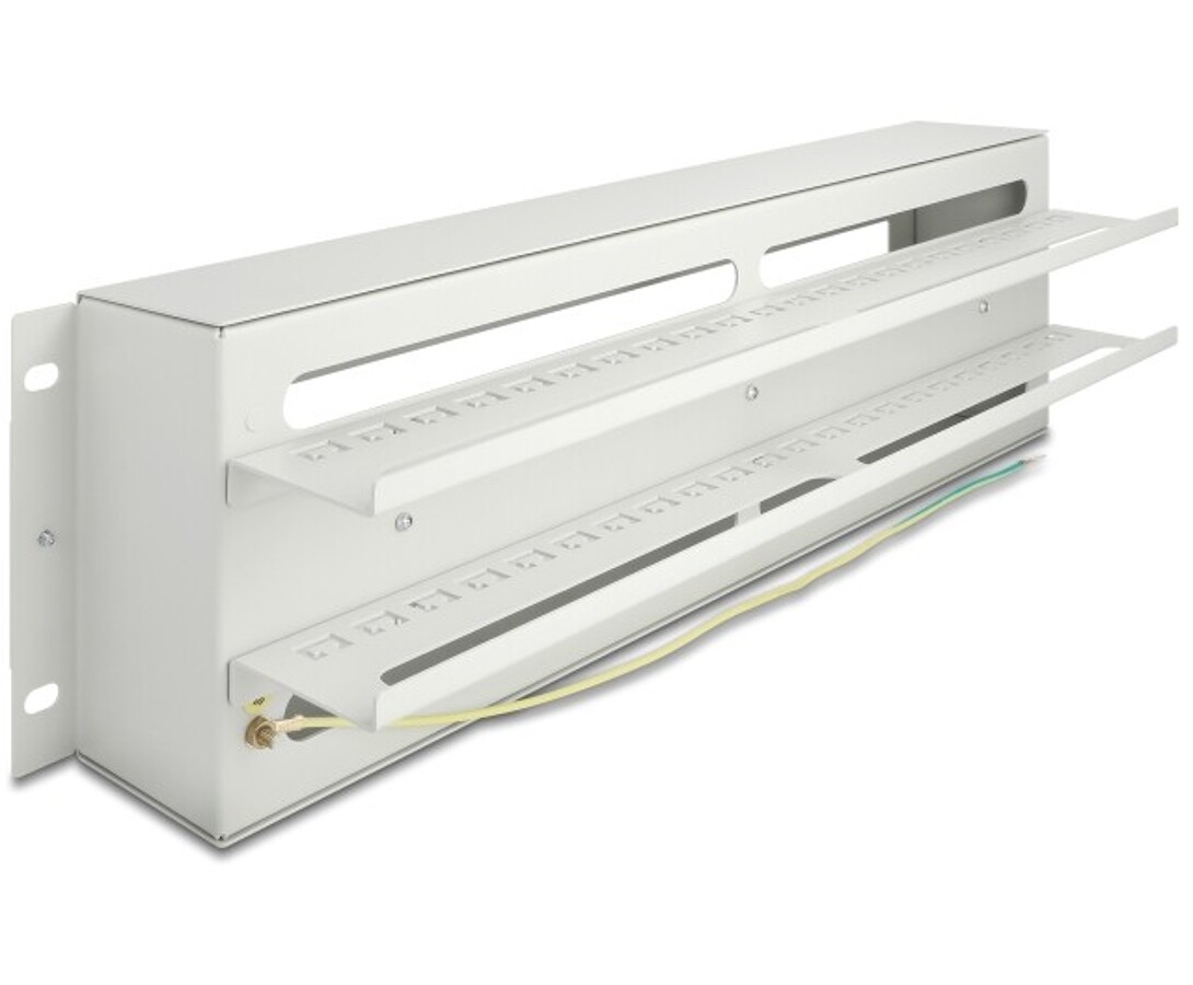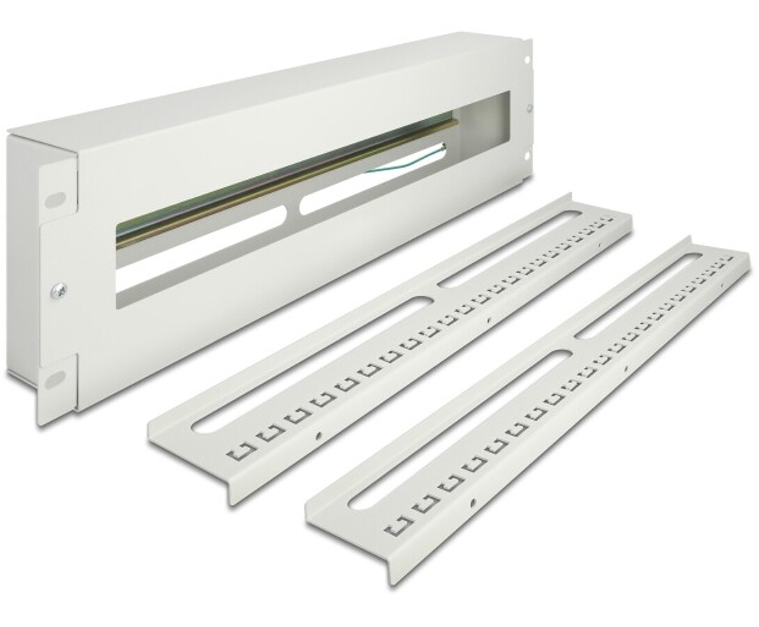 Pasek do zarządzania kablami 19" z pokrywą i szyną DIN 3U metalowy szary Delock 67196