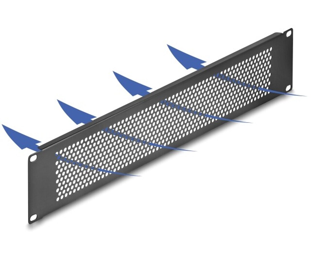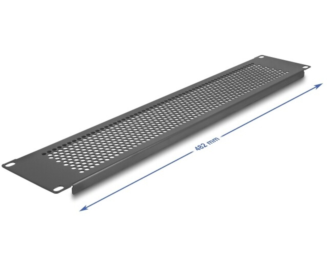 Panel marki Delock przeznaczony do instalacji w szafie sieciowej 19", 2U. Wypełnia puste półki w szafie, zapewniając optymalną wentylację dzięki zintegrowanym otworom wentylacyjnym, które umożliwiają odpowiednią cyrkulację powietrza. Wykonany z trwałego metalu w kolorze czarnym, idealny do stosowania w różnorodnych aplikacjach, gdzie ważna jest odpowiednia wentylacja urządzeń umieszczonych w szafie.
