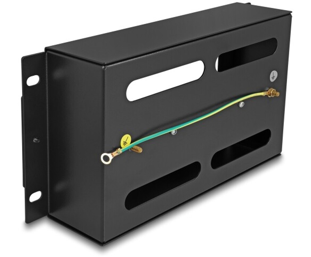 Listwa wyłącznikowa 10" z pokrywą i szyną DIN 3U metaliczna czarna Delock 67320