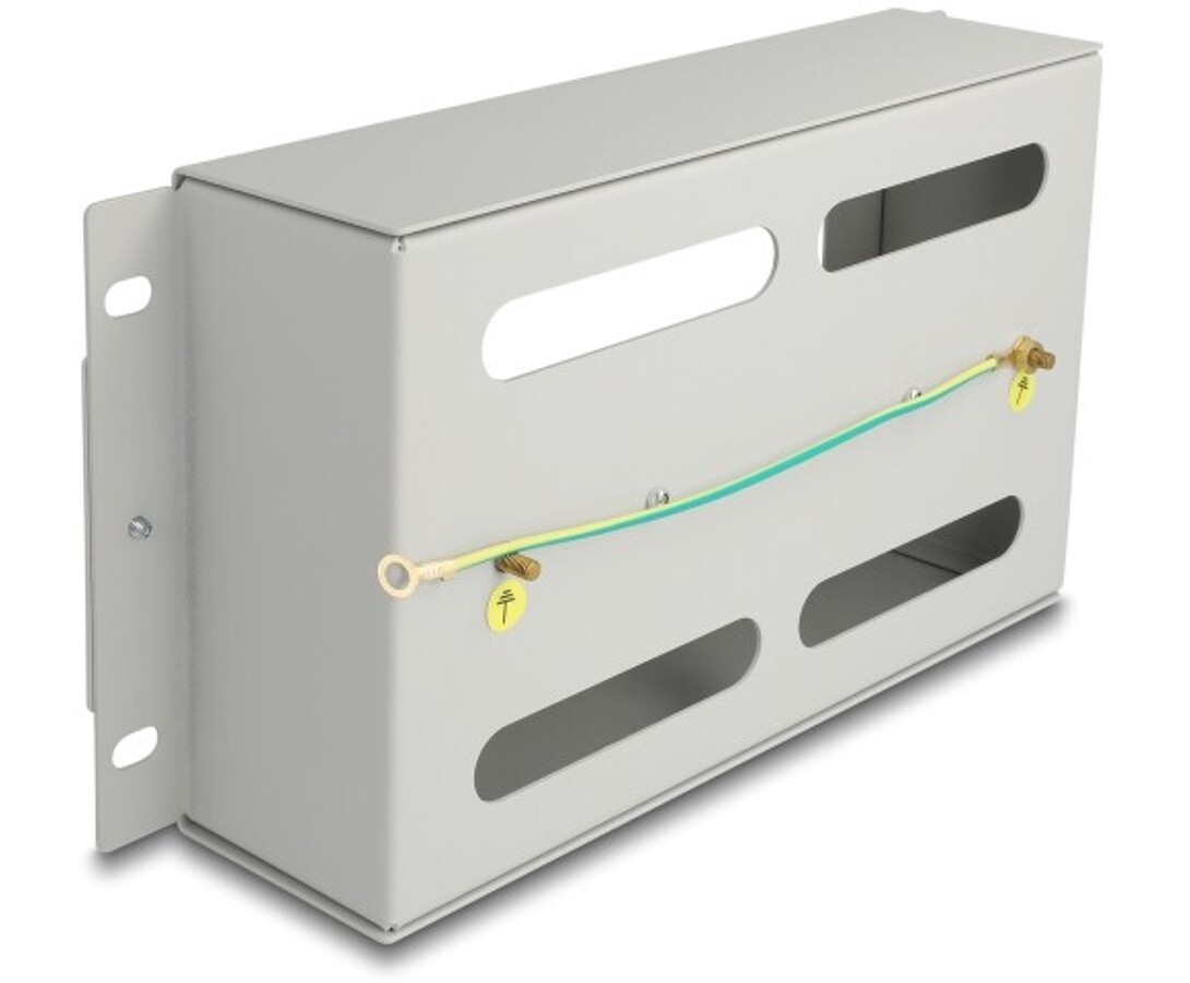 Listwa wyłącznikowa 10" z pokrywą i szyną DIN 3U metaliczna szara Delock 67319