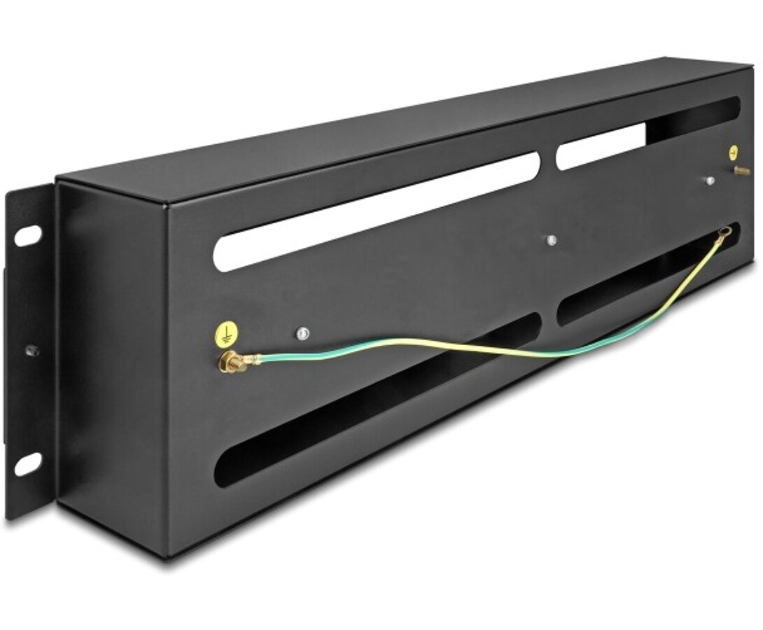 Listwa wyłącznikowa 19" z pokrywą i szyną DIN 3U metaliczna czarna Delock 67195
