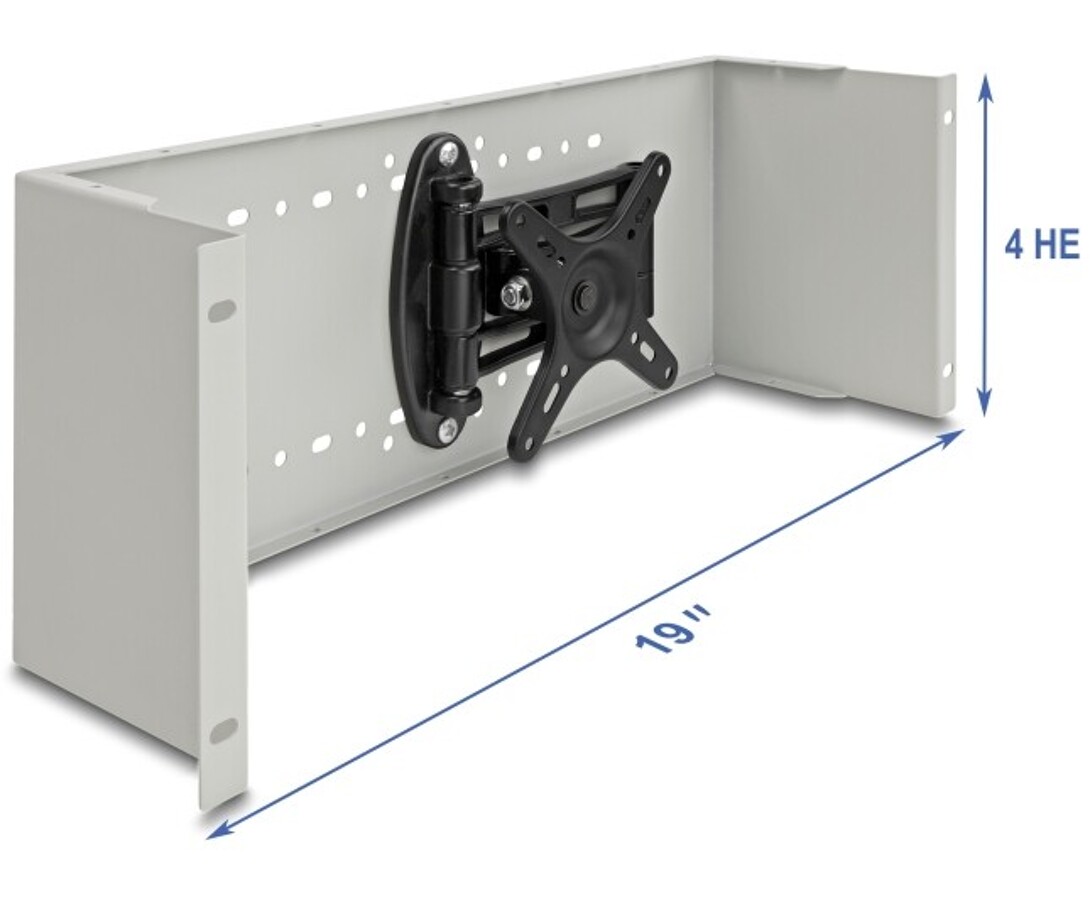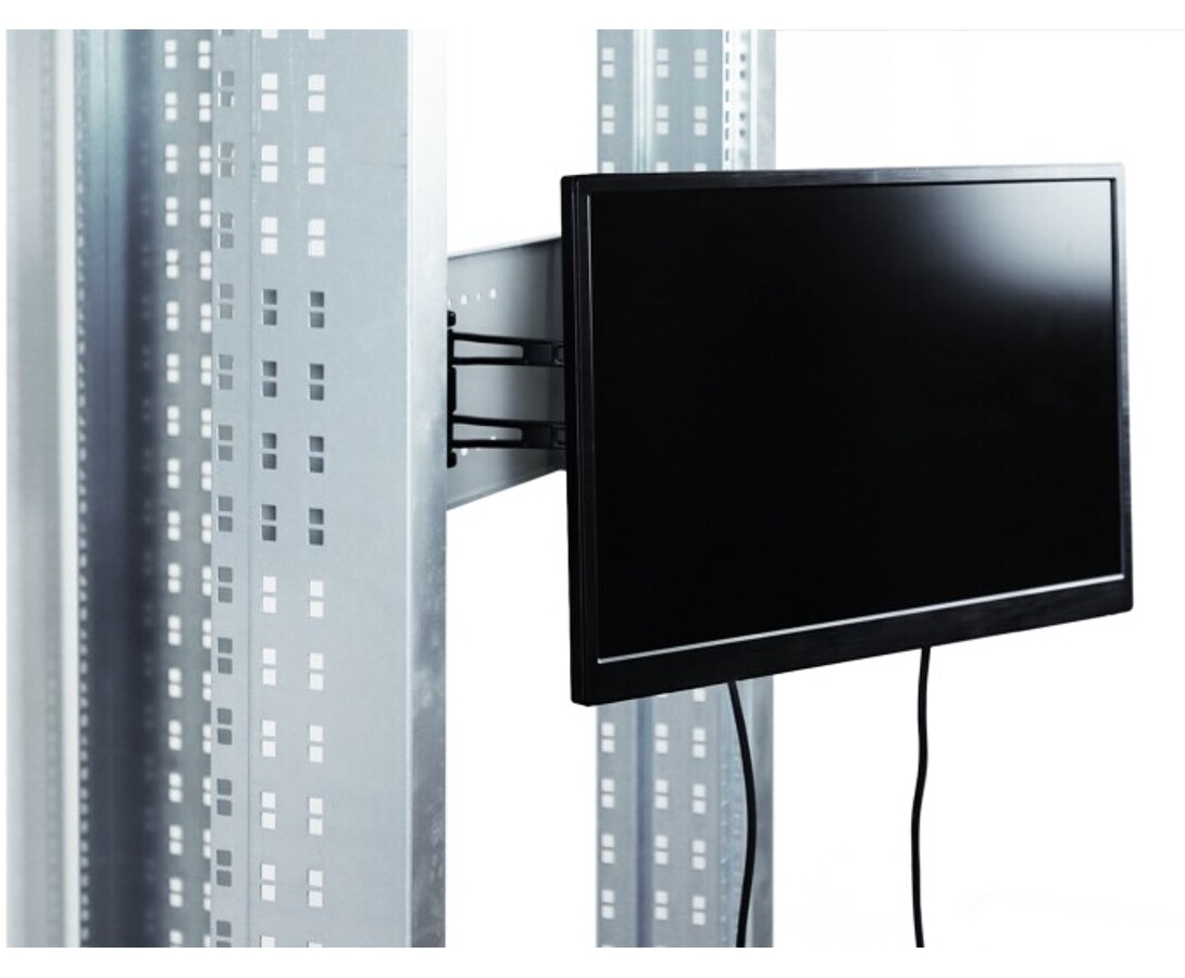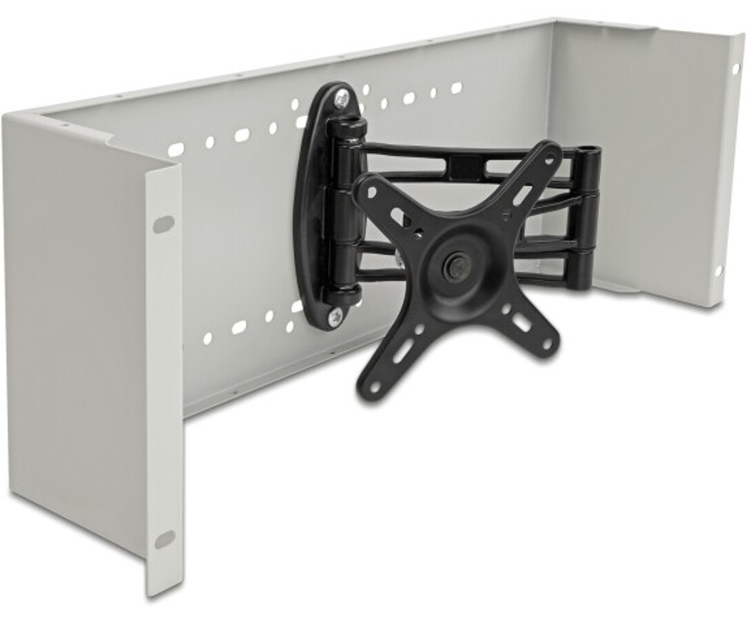 Wysięgnik monitora marki Delock przeznaczony do montażu w szafach 19" umożliwia stabilne i kompaktowe umieszczenie monitora w racku. Produkt wyposażony w trzy wbudowane złącza, które zapewniają optymalne rozmieszczenie monitora. Zaczep monitora jest zgodny z VESA, a długość wysięgnika wynosi 320 mm. Wysięgnik posiada otwory o rozmiarach 50 x 50 mm, 75 x 75 mm oraz 100 x 100 mm, umożliwiając różnorodne konfiguracje montażowe. Produkt jest w stanie udźwignąć maksymalne obciążenie do 10 kg. Wykonany w kolorze szarym, doskonały do profesjonalnych zastosowań w szafach rackowych.
