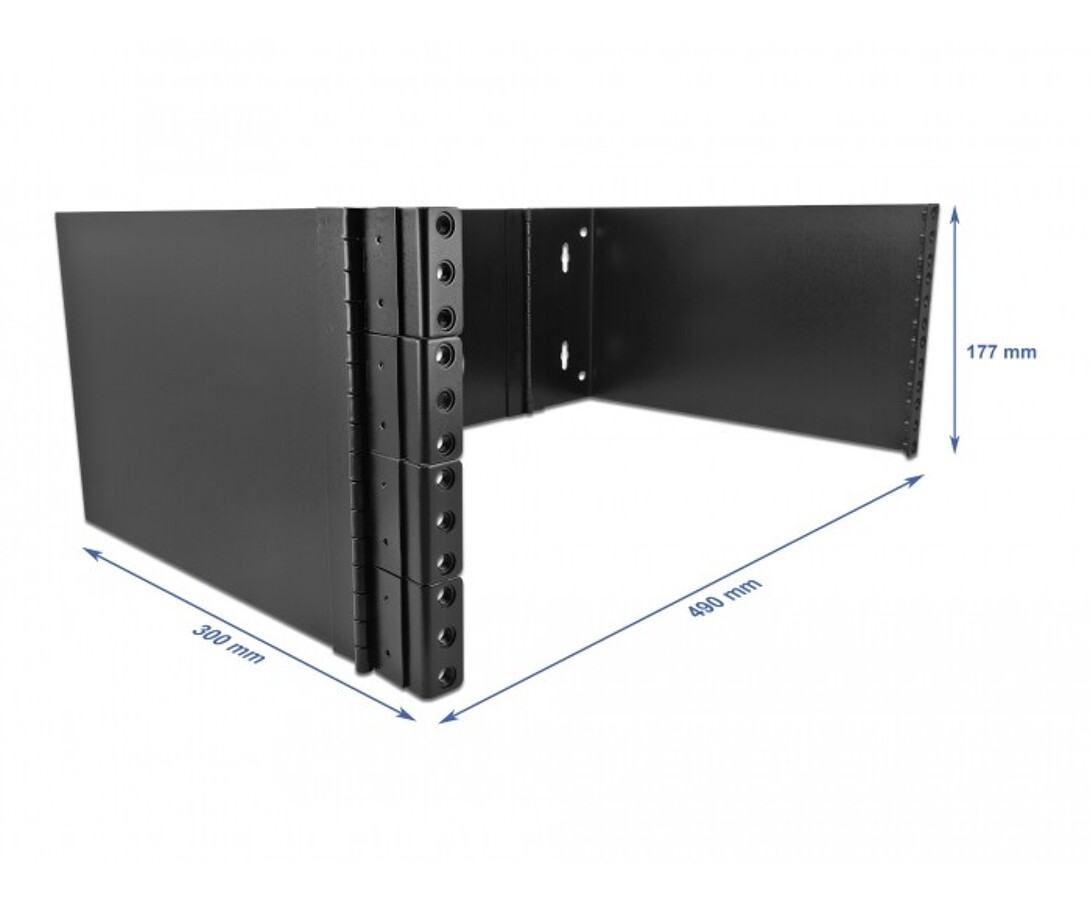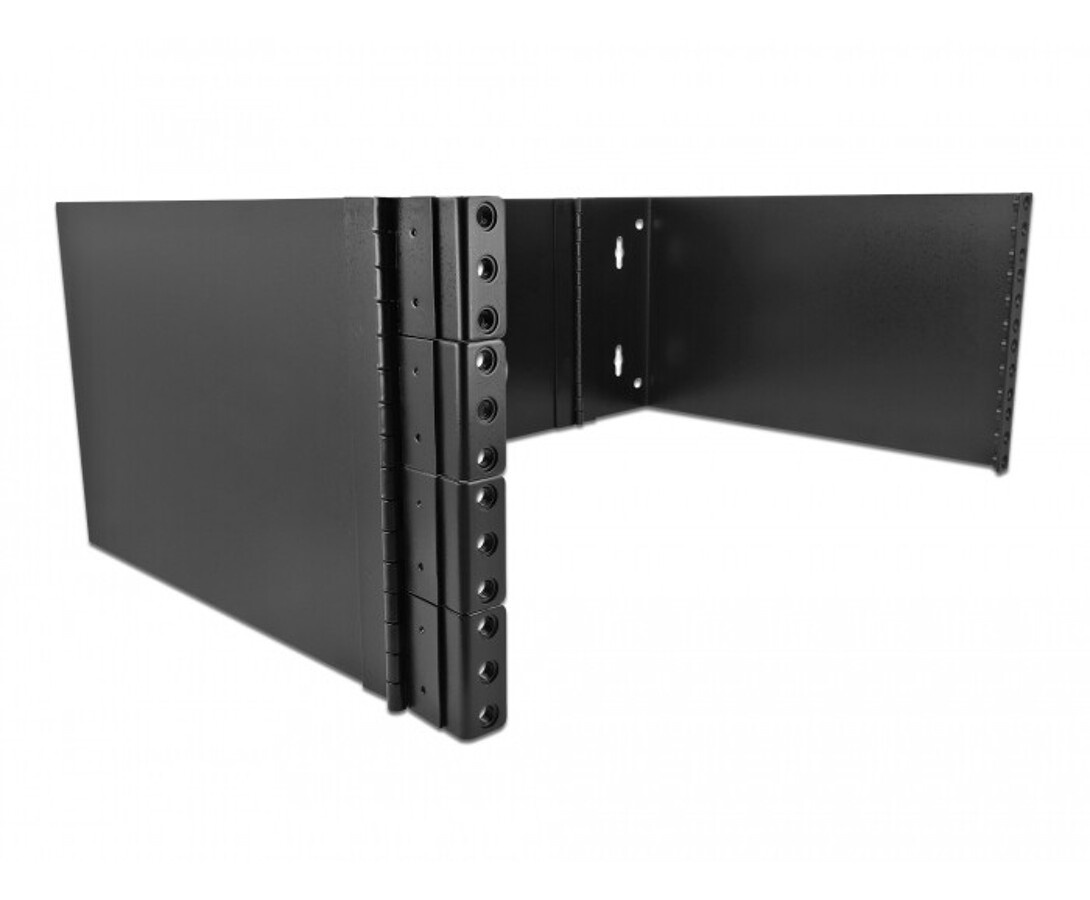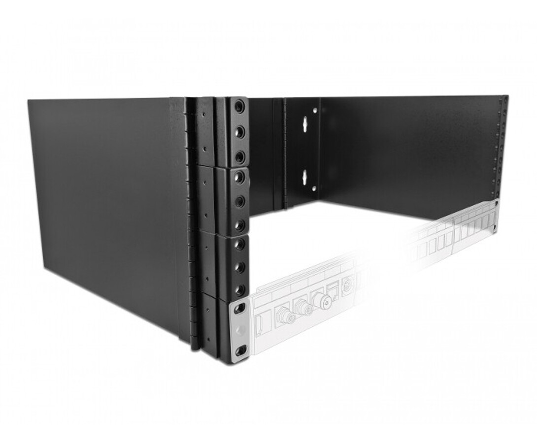 Rack marki Delock przeznaczony do montażu urządzeń 19" na ścianie, np. czterech krosownic 1U, umożliwia montaż urządzeń o głębokości do 30 cm. Produkt wyposażony w jednostronny zawias, co ułatwia montaż. Składana konstrukcja pozwala na oszczędność miejsca i zapewnia łatwy montaż. Wykonany z metalowej obudowy w kolorze czarnym, doskonały do profesjonalnych zastosowań w szafach rackowych.