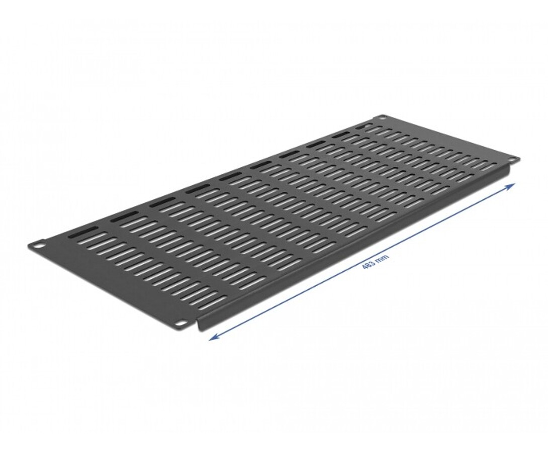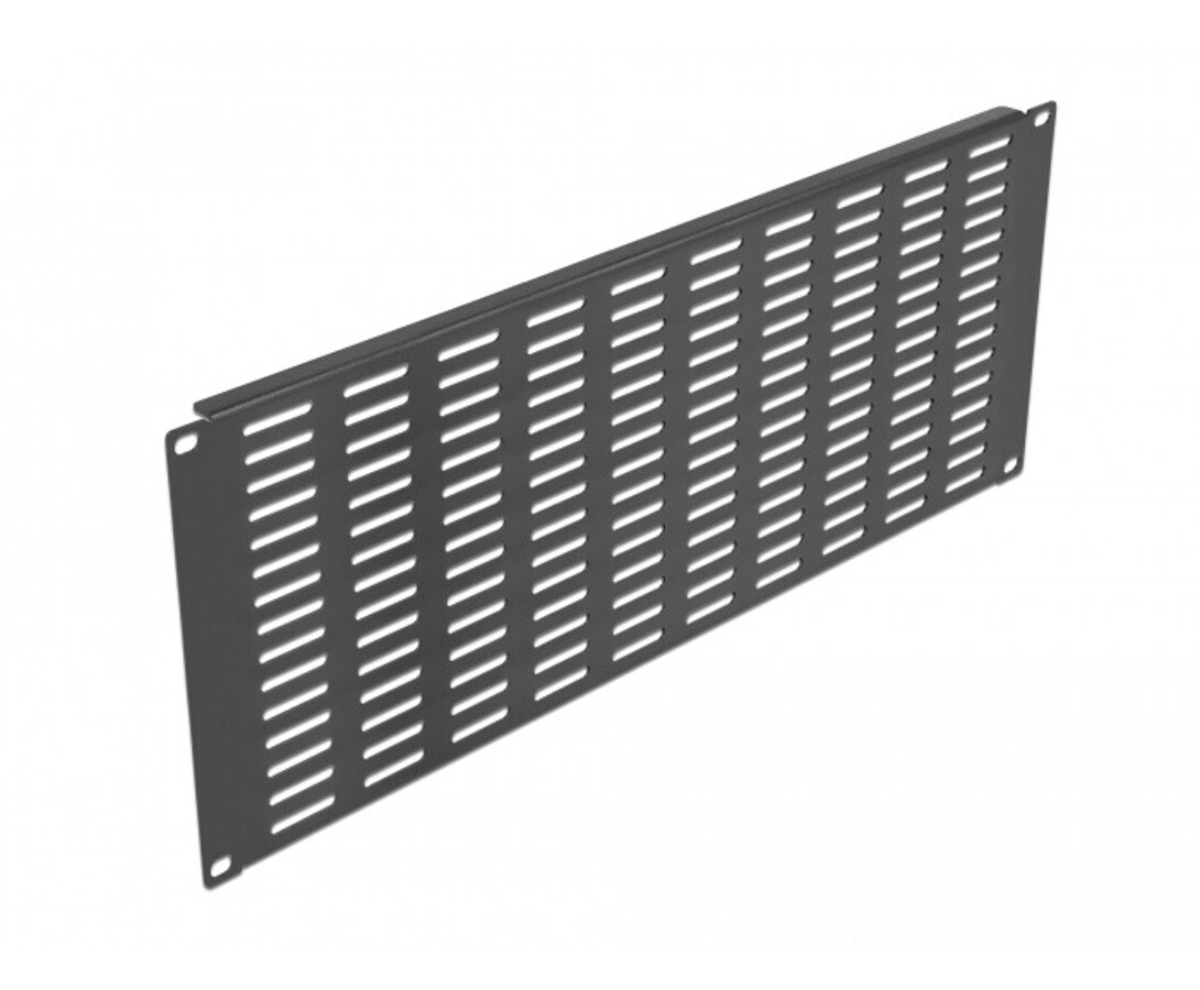 Panel marki Delock przeznaczony do instalacji w szafie sieciowej 19" wypełnia puste półki w szafie. Zintegrowana kratka wentylacyjna zapewnia optymalną cyrkulację powietrza w szafie, poprawiając chłodzenie urządzeń. Produkt do montażu w szafie 19" o wysokości 4U, co umożliwia efektywne zarządzanie przestrzenią i poprawia organizację wewnątrz szafy.
