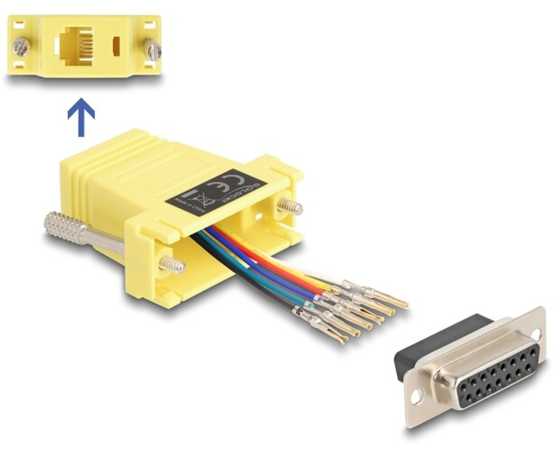 Adapter D-Sub 15-pin. żeński do RJ12 żeński do montażu żółty Delock 67091