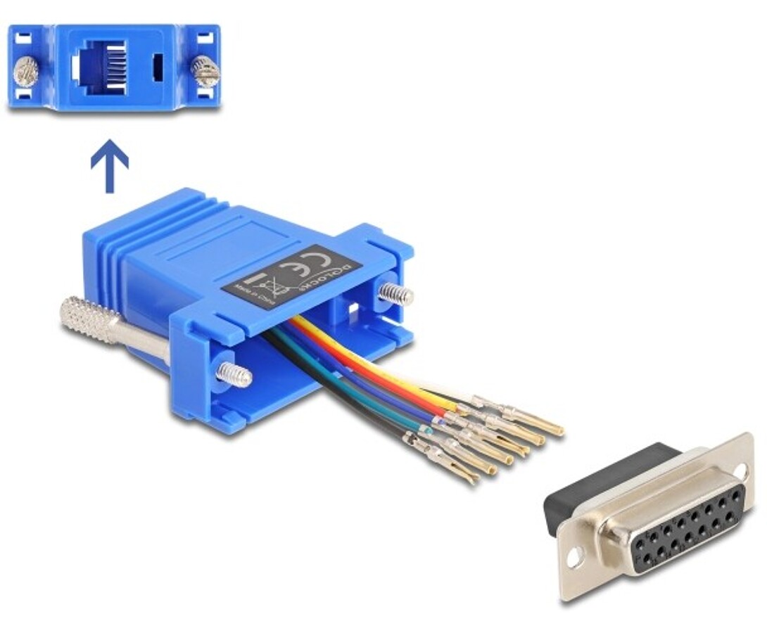 Adapter marki Delock umożliwia rozbudowę interfejsu szeregowego D-Sub 15 poprzez zastosowanie przewodu ISDN, telefonicznego lub RJ12. Konstrukcja pozwala na elastyczne i niezależne przypisywanie styków, co umożliwia indywidualne dopasowanie połączeń do różnych aplikacji. Styki można wprowadzać do obudowy D-Sub 15 zgodnie z wymaganiami, a po kliknięciu zatrzaskują się w miejscu, zapewniając stabilne i trwałe połączenie. Adapter jest przeznaczony do zastosowań w systemach automatyki, komunikacji oraz urządzeniach serwisowych wymagających precyzyjnej konfiguracji pinów.